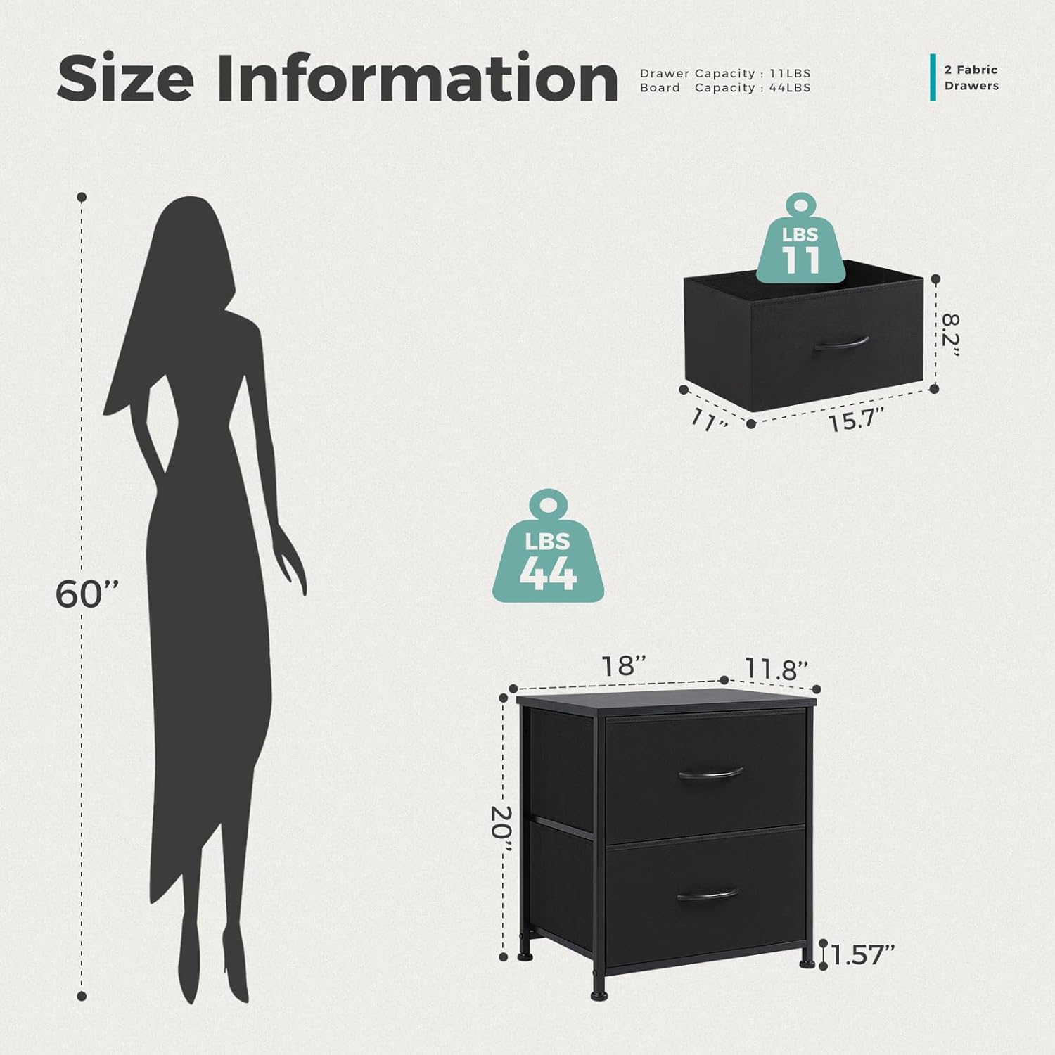 - Nightstand for Bedroom The nightstand with 2 storage drawers is a versatile and functional piece of furniture that offers ample space for organizing and storing various items. Whether it's clothes, accessories, or miscellaneous items, the drawers allow for easy organization and quick retrieval of items when needed. With a height of 20 inches, it is the perfect size for placing next to a bed, providing easy access to essentials, such as books, glasses, and a lamp.