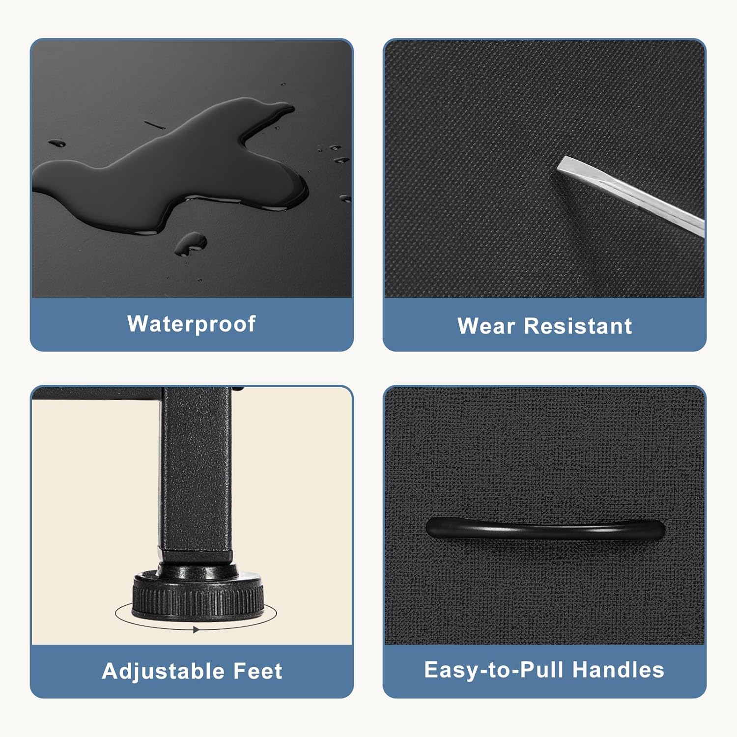 - Assemble & Service The packaging is equipped with instructions and an accessories bag, which allows only about 20 minutes to assemble your fabric dresser with detailed instructions and the installation video. If you have encountered any problems, we would be delighted to help you find a solution and reply to your email within 24 hours.