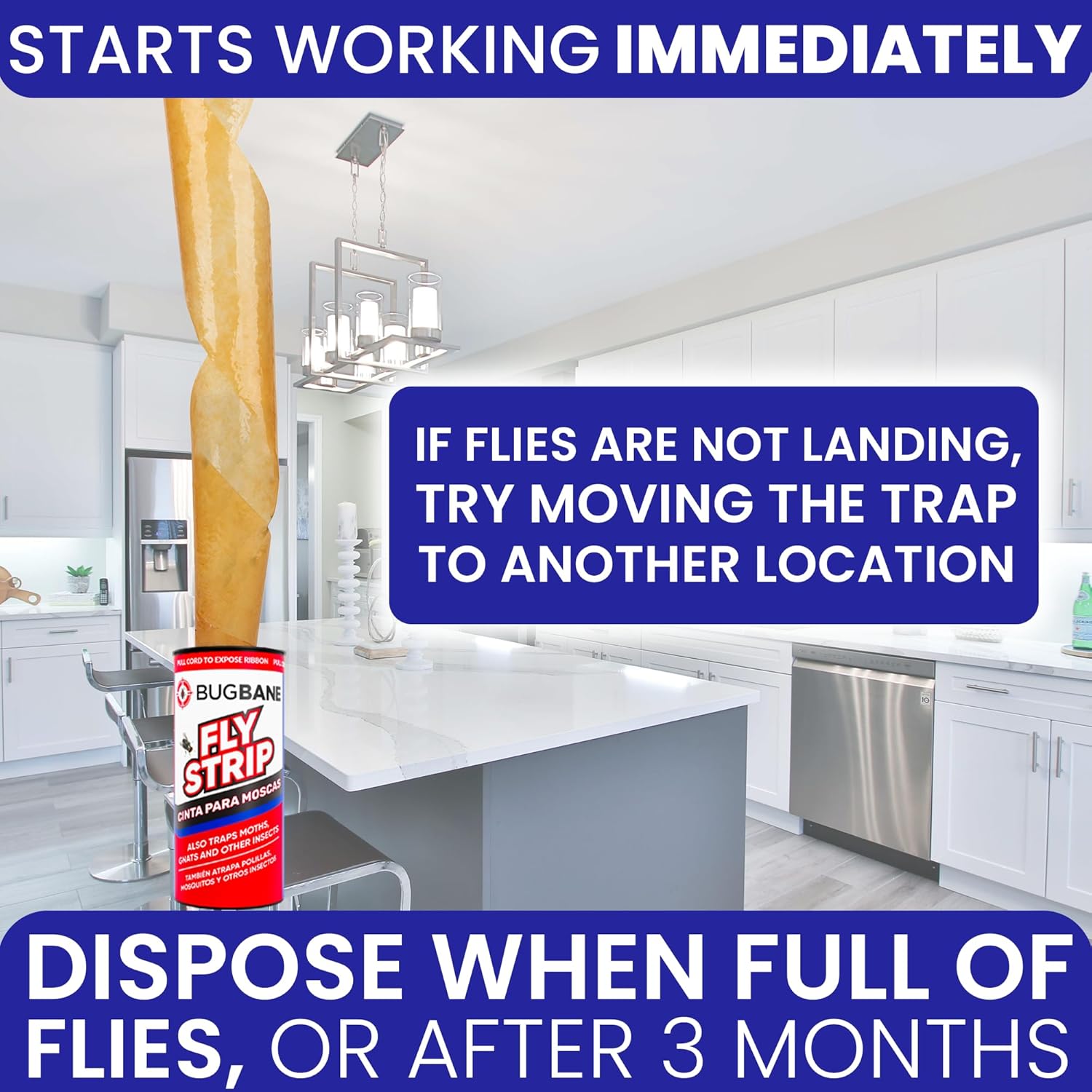 Fly Strips Indoor Sticky Hanging 24pk with Pins. Non Toxic Outdoor Fly Trap Indoor for Home. Flies Tape Paper Trap Ribbon Roll for House Gnat Fruit and Housefly. Bug Catchers for Inside Home Flypaper