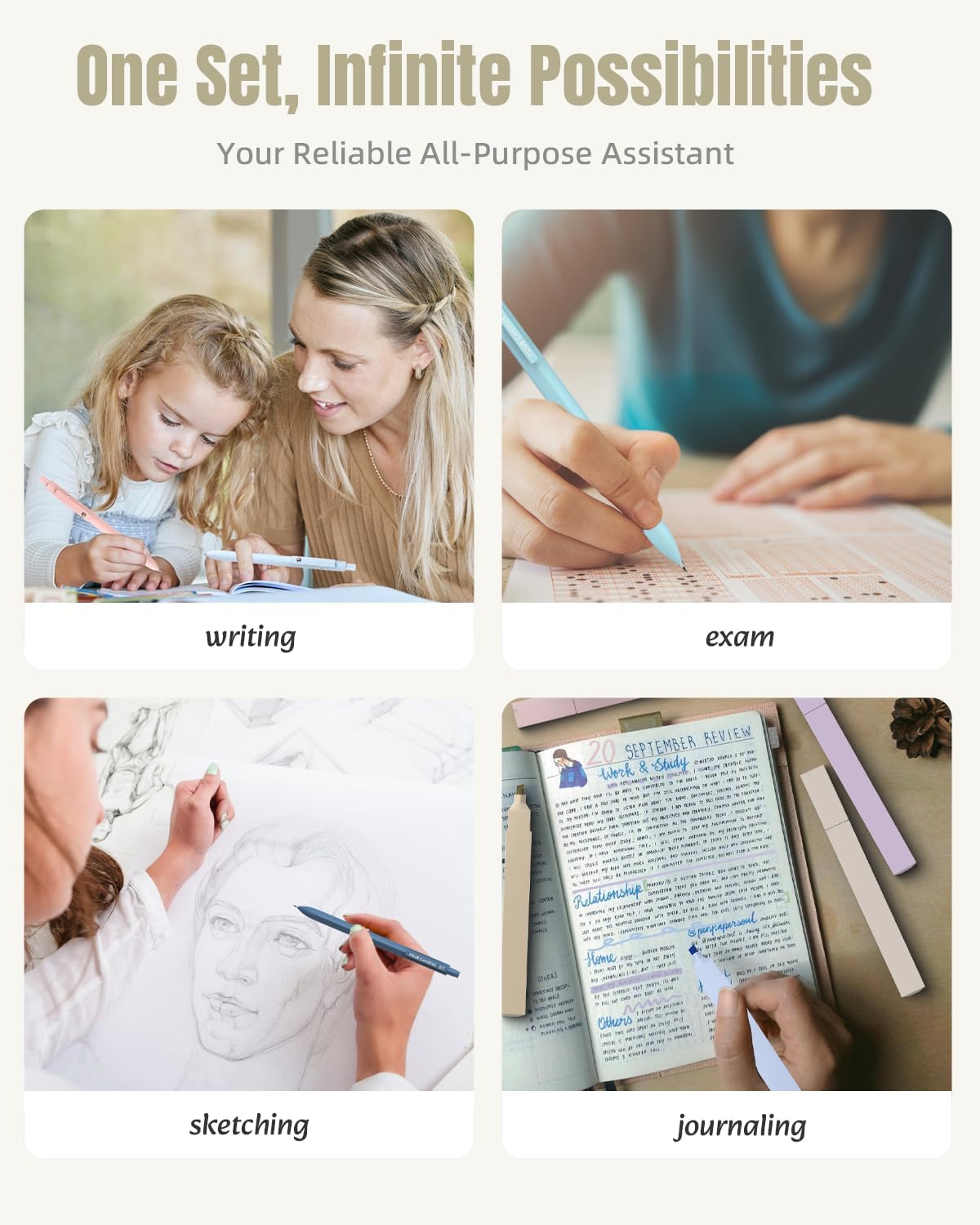 Four Candies 39 PCS Aesthetic School Supplies with Cute Pen Case, 12 Pastel Highlighters, 5 Black Ink Gel Pens, 6 Mechanical Pencils Set for Students Stationary College Essentials (Pink)