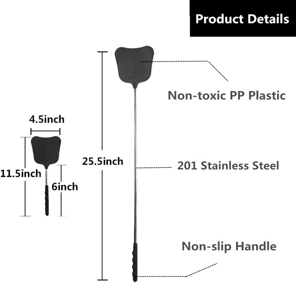 Foxany Telescopic Fly Swatters, Durable Plastic Fly Swatter Heavy Duty Set, Flyswatter with Stainless Steel Handle for Indoor/Outdoor/Classroom (2 Pack)