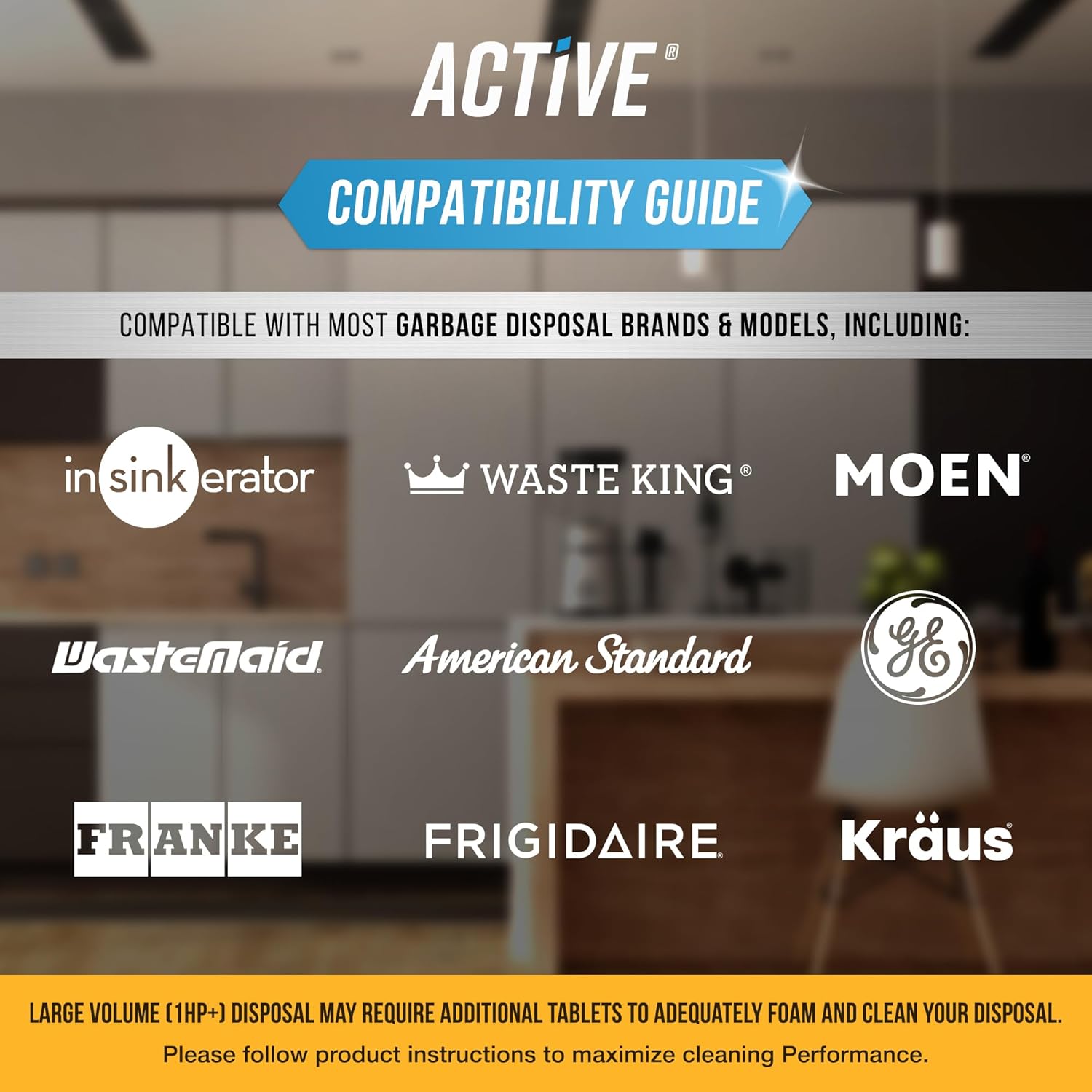 Garbage Disposal Cleaner Deodorizer Tablets - 24 Pack, New Powerful XL Foaming Tablet - Fresh Citrus Foam Sink Garburator Disposer Freshener, Natural Kitchen Drain Cleaning Care - 1 Year Supply