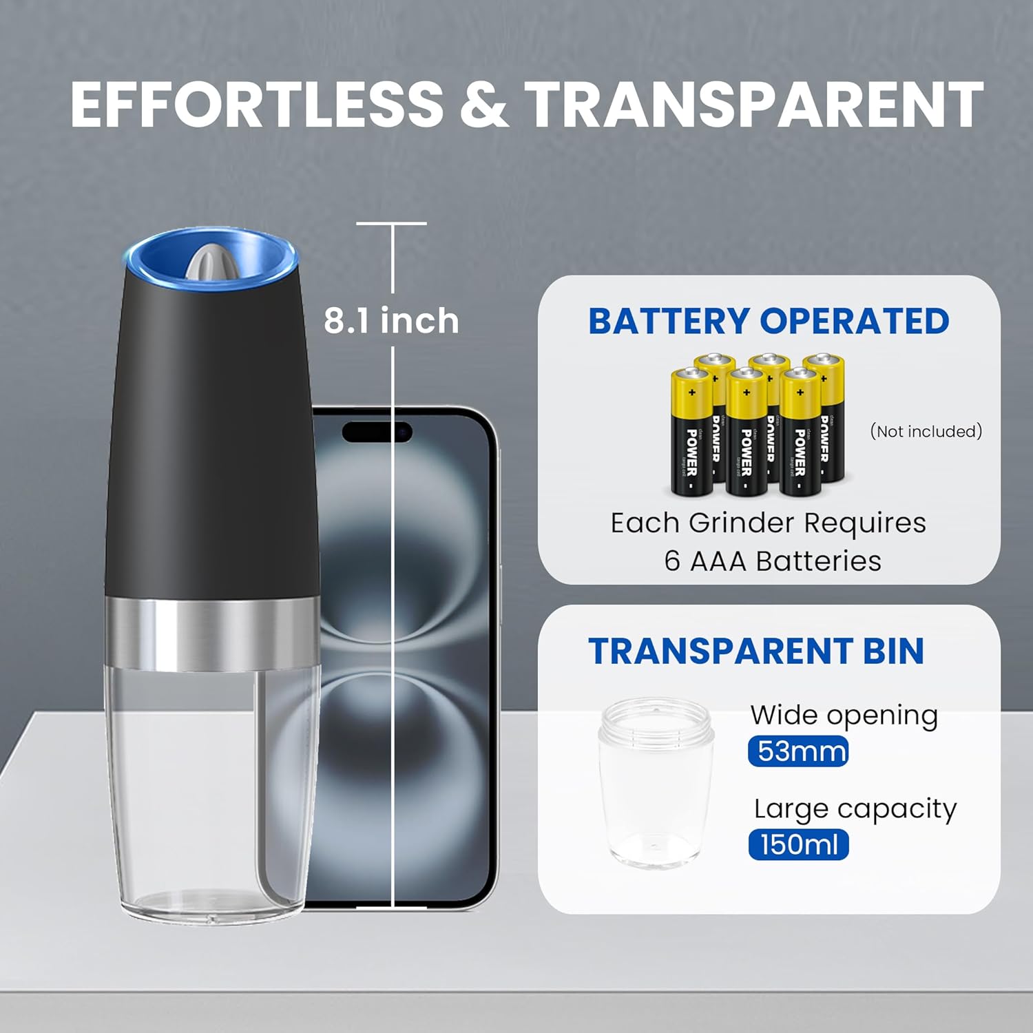 - Consistent Excellence: The UNNEES battery operated salt and pepper grinder set, powered by an efficient motor and innovative design with 6 AAA batteries (not included), guarantees enduring and robust grinding, effortlessly meeting culinary perfection