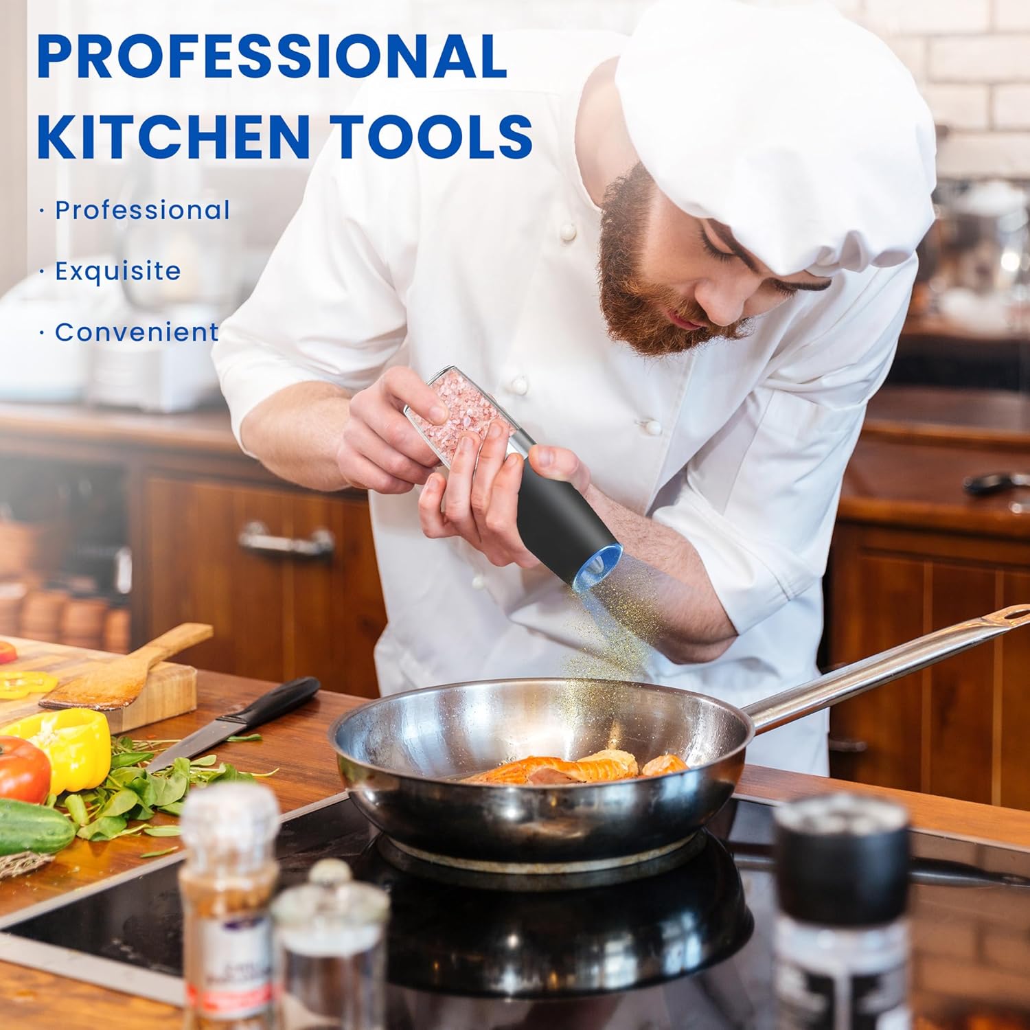 - Perfect Present: The UNNEES Electric Salt and Pepper Grinder Set, designed for culinary excellence. Compact and portable, suitable for travel, camping, or picnics, catering to the needs of chefs and cooking enthusiasts