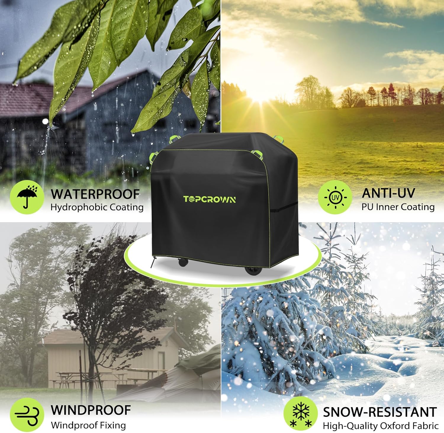 Grill Cover for Outdoor Grill, Universal Fit 45"-75" BBQ Gas Grill Waterproof Anti-UV Oxford Fabric Windproof Design with Adjustable Straps, Fits Weber/Char-Broil/Nexgrill and More (58")