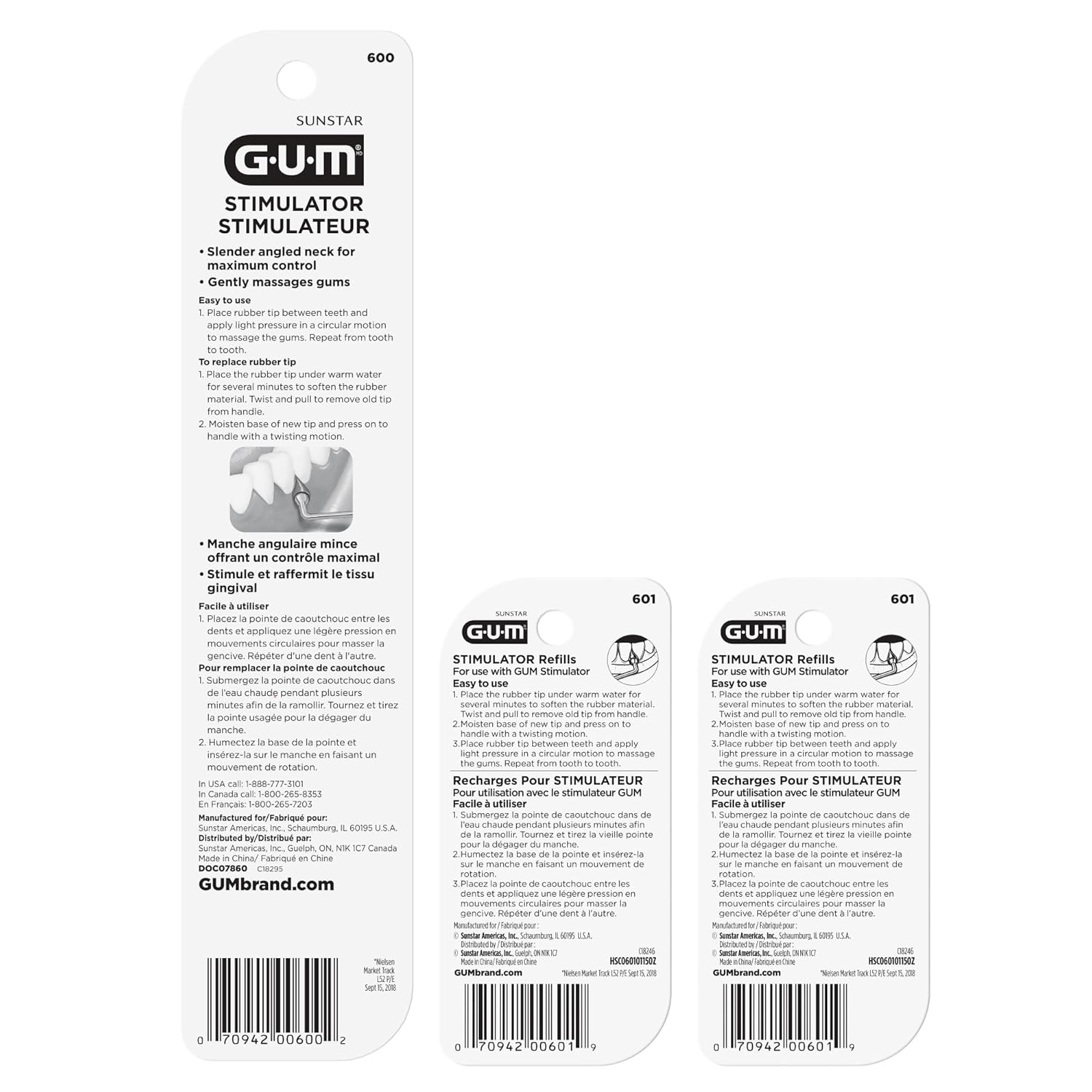 GUM Stimulator Permanent Handle - Long Handled Massager Remove Plaque & Promote Health (Handle + 2 Refill Packs)
