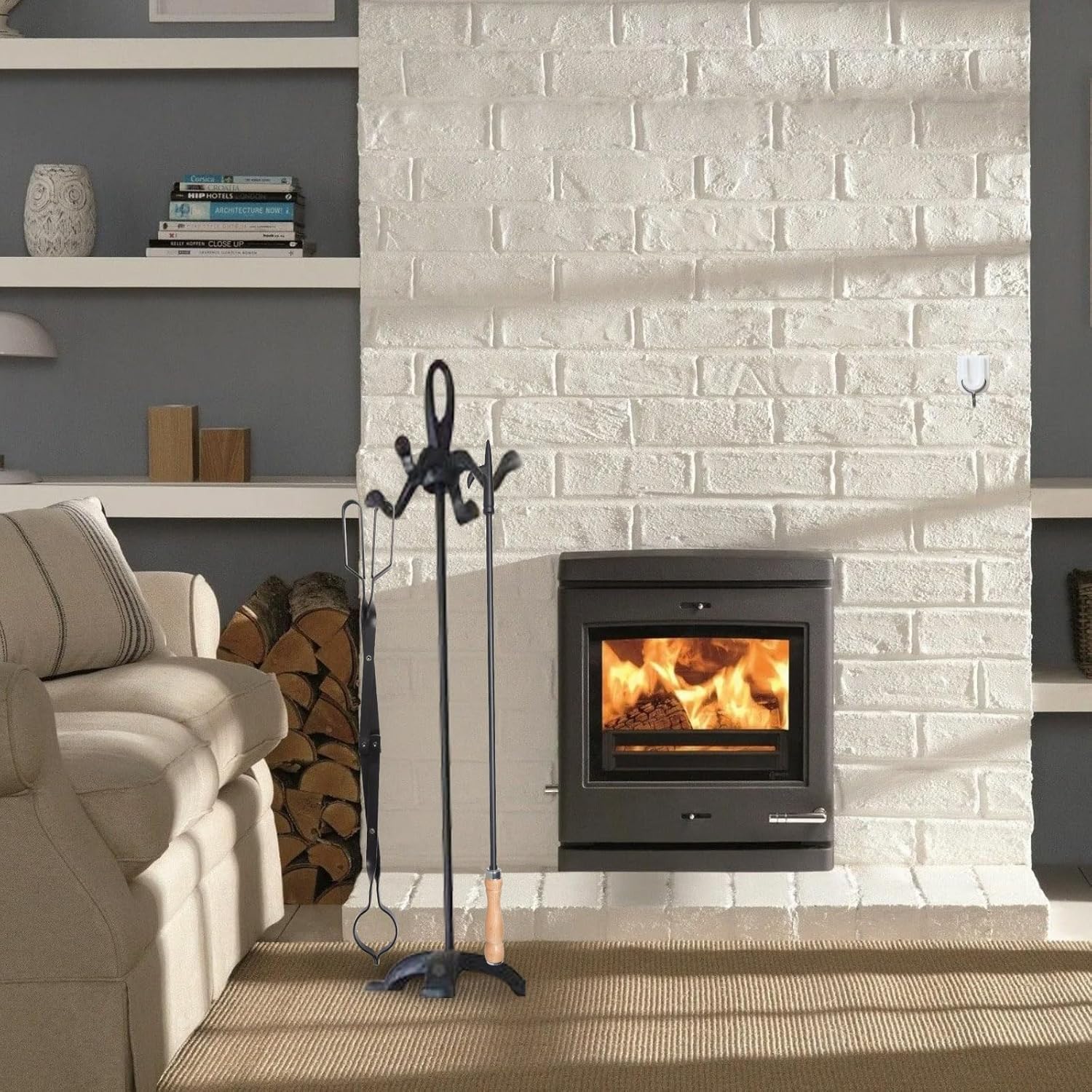 Heavy Duty 32” Long Fireplace Fire Pit Campfire Poker Stick and 26” Fireplace Tongs Tool Sets, Log Grabber, Rust Resistant Black Finish Camping Fireplace Tools for Indoor/Outdoor