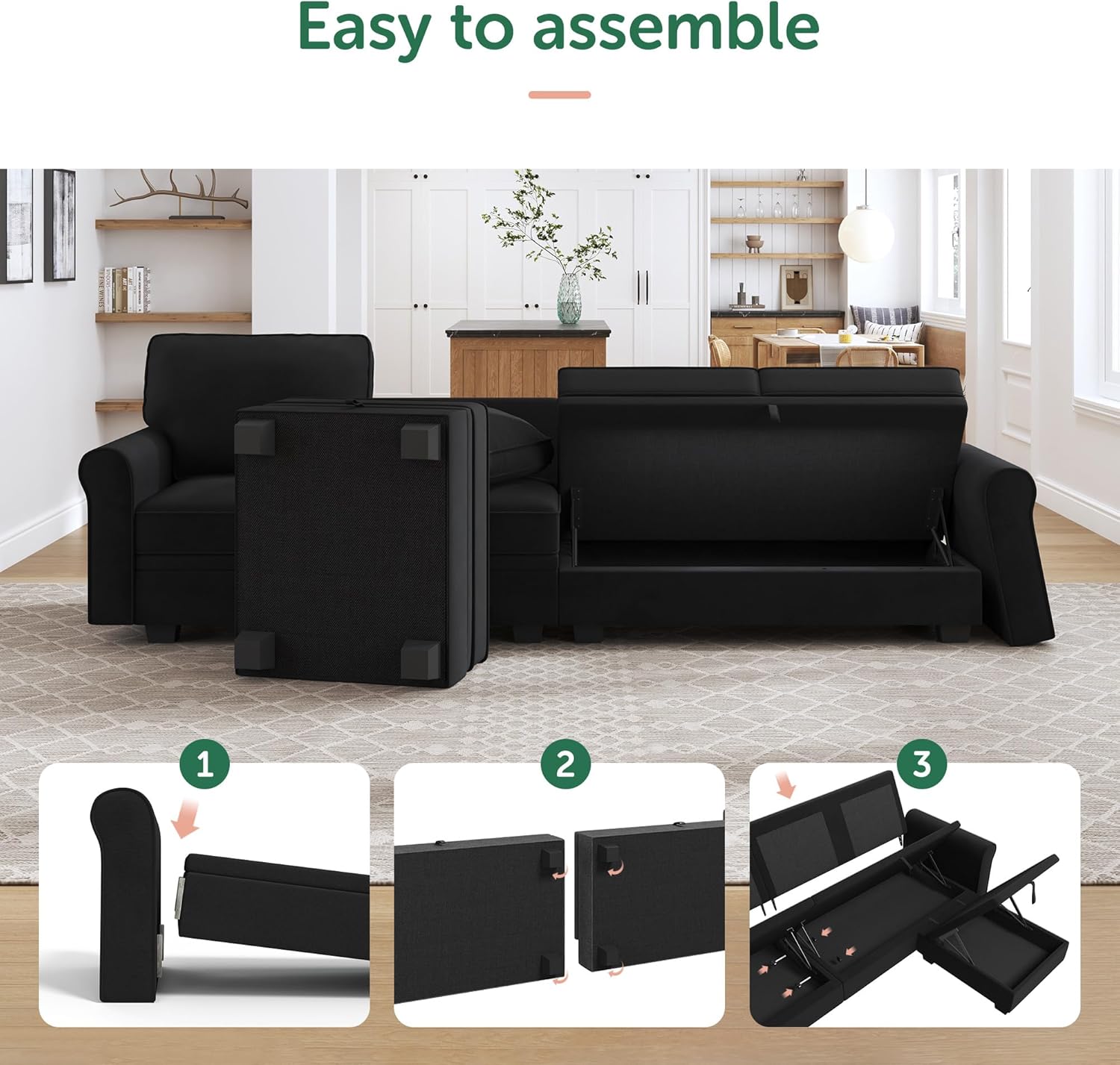 - Large storage space: The 4 seat section is made up of 2 double seat with storage space. The two large storage space can meet your storage needs for large items. You just need to pull the strap and lift the cushion lid to easily open it