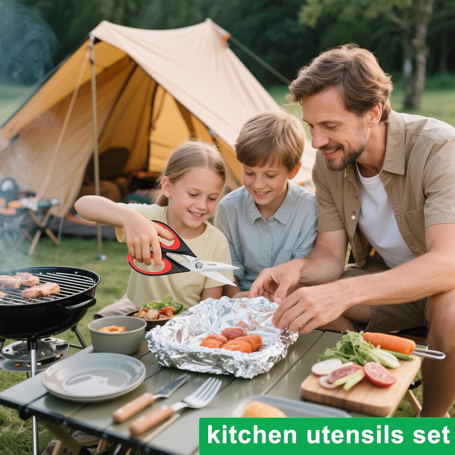 - ALL PURPOSE KITCHEN SCISSORS: Heavy duty 8.5" super sharp kitchen shears, Valued 2-Pack, comfort-Grip handles. Great All-purpose scissors for kitchen, household, new home, camper, first apartment, and outdoor general use, Great kitchen utensils set for women, men, adults, and older kids. Patented Design
