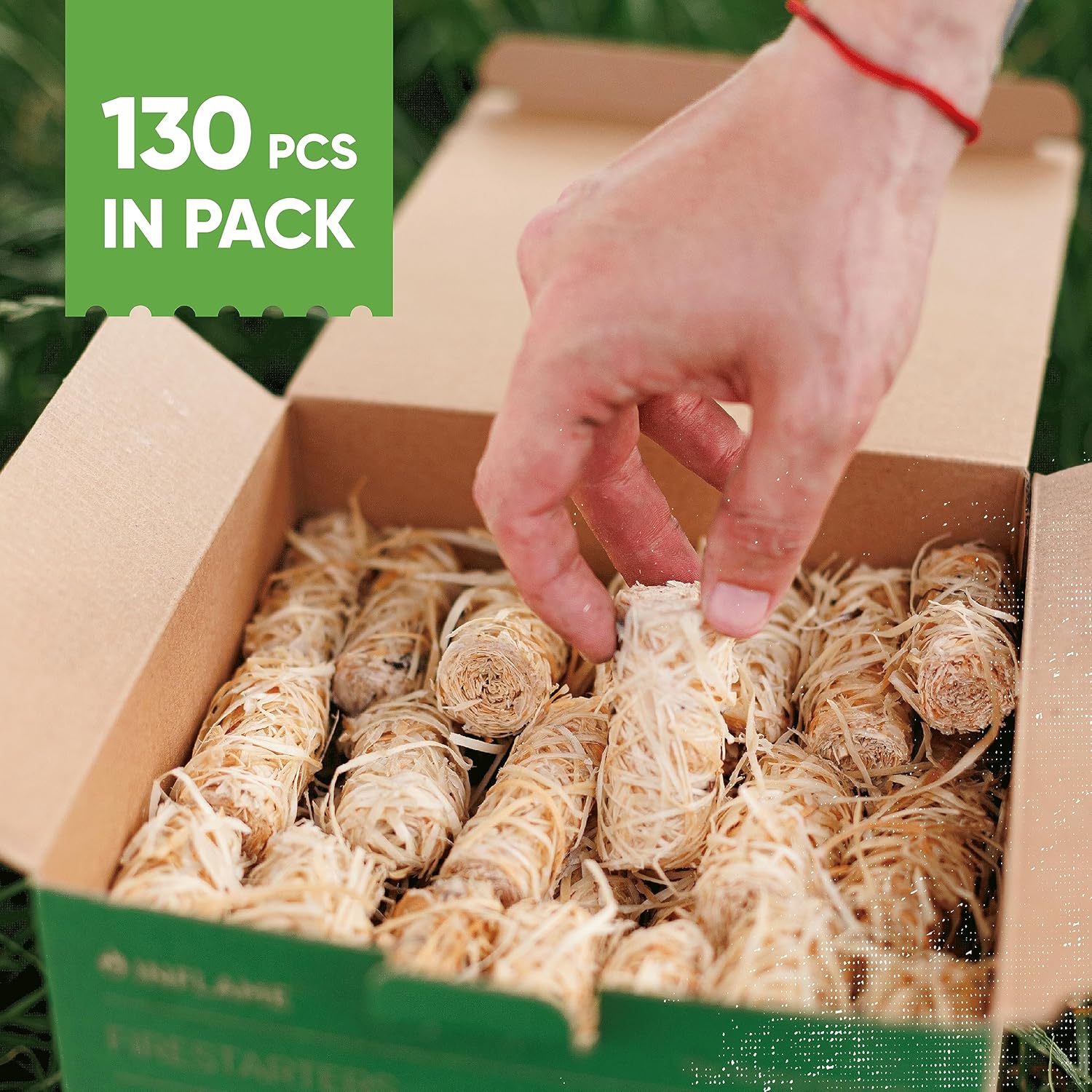 Inflame Fire Starters 130 pcs Fire Starters for Campfires, Grill, BBQ, Fireplace, Woodstove - Charcoal Starter - Waterproof, Weather-Resistant - Natural Wood Fireplace Starters