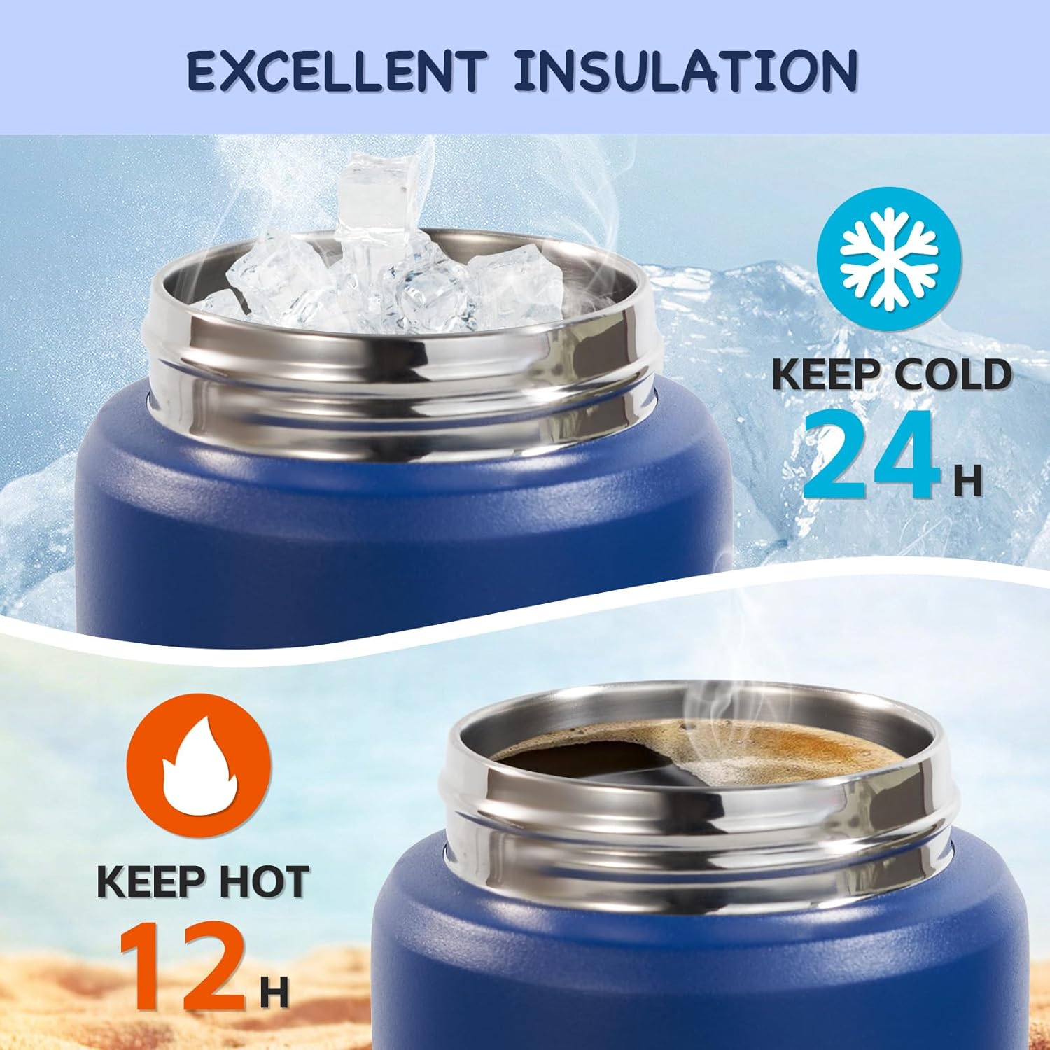 - INSULATED BOTTLE - Our insulated stainless steel water bottle designed for kids, keeps liquids hot for 12 hours and cold for 24 hours. Our insulated water bottle using 304 stainless steels, free of BPA, lead, PAES.