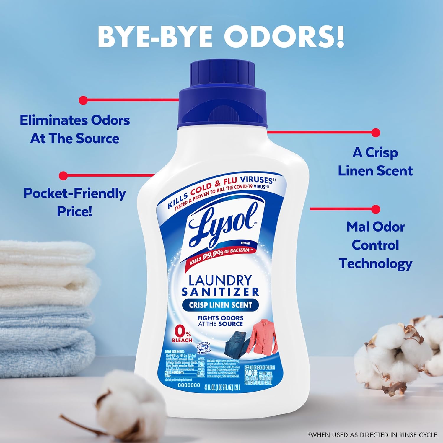 Lysol Disinfectant Laundry Sanitizer & Scent Booster, Laundry Detergent Additive, Color Safe Bleach Alternative, Laundry Odor Eliminator, Kills Bacteria & Viruses, Crisp Linen Scent, 41 Fl Oz Liquid
