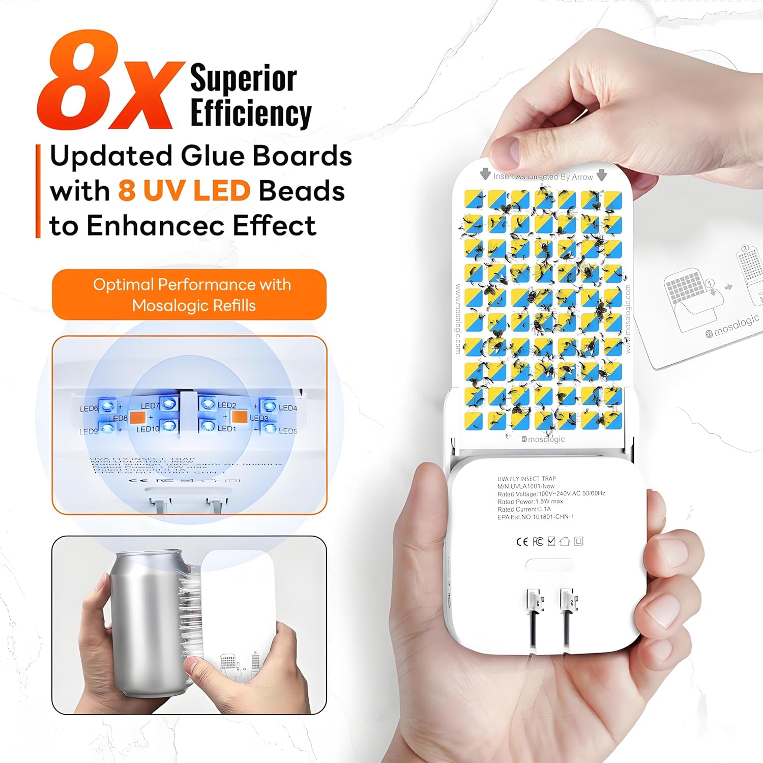 Mosalogic Fruit Fly Traps for Indoors Gnat Trap for House Indoor-600 Sqft Protection Area UV Fly Insect Trapper for Fruit Flies,Gnat,Mosquito,and Other Flying Insect Plug in Bug Killer White