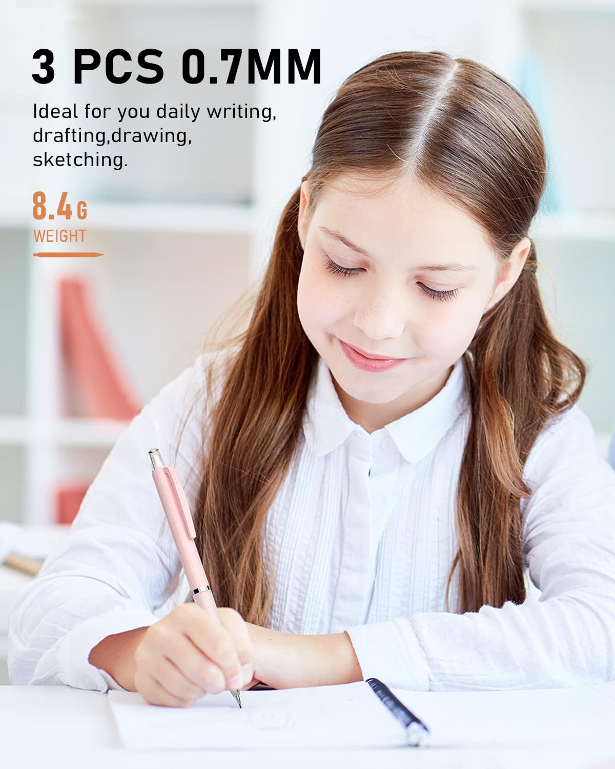 Nicpro 3PCS Cute Mechanical Pencil Set with Case, 0.7 mm Pencils with 6 Tube HB Lead Refill, 3PCS Eraser, 9PCS Eraser Refill for School Supplies Kid Student Writing, Drafting Drawing Sketching
