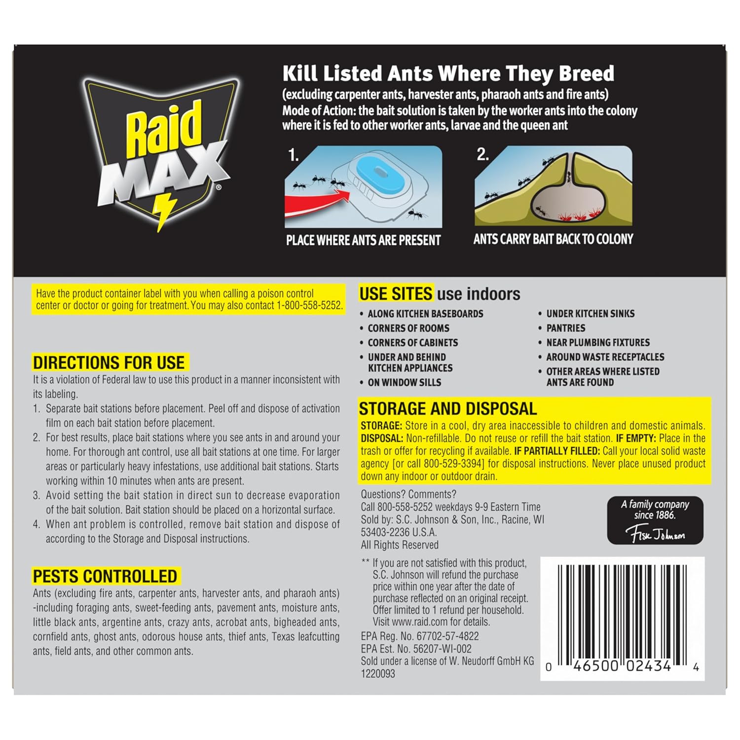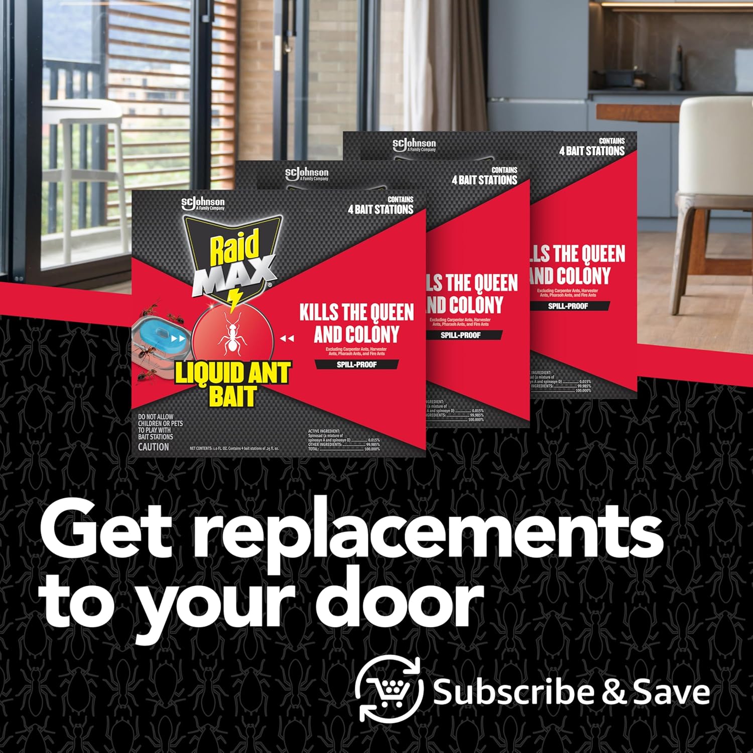 Raid Max Liquid Ant Bait; Kills Ants Where They Breed, for Indoor and Outdoor Use; 12 Bait Stations