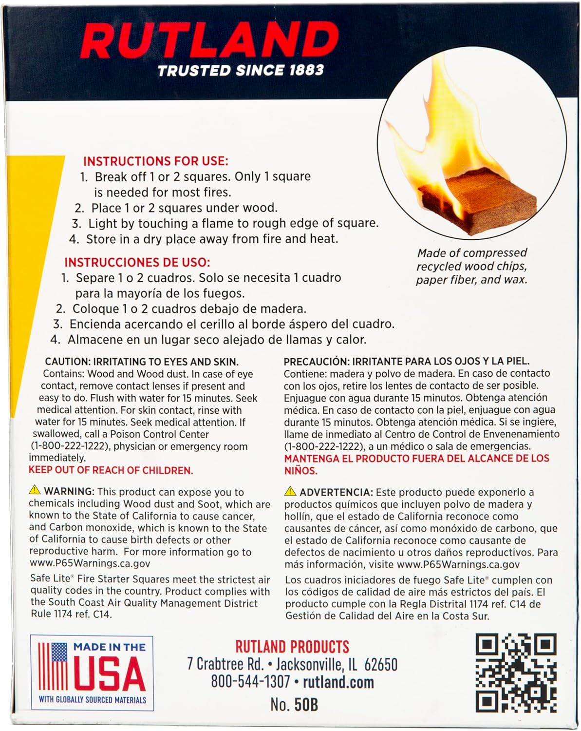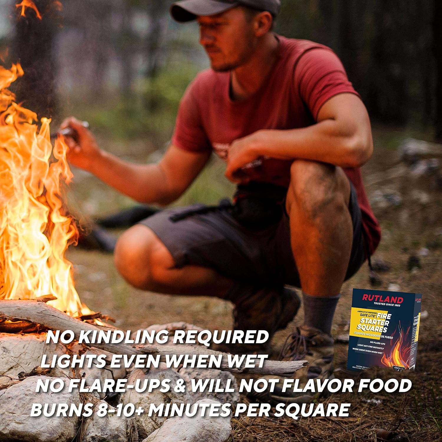 Rutland Safe Lite Fire Starter Squares - Heavy Charcoal Starters for Fireplace, Grill Pit, BBQ & Campfires - USA-Made Camping Accessories - Odorless Long Burn - 4.6 Lbs, 144 Squares