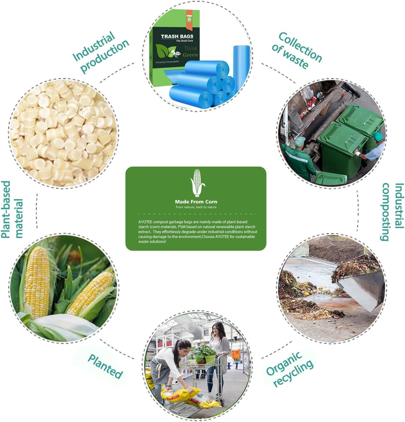 Small Trash Bags, AYOTEE 4-6 Gallon Compostable Garbage Bags, 4 Gallon Trash Bags, Unscented Leak Proof Biodegradable Bags Wastebasket Liners, Bathroom trash bags, Compost Bags (100 Counts, Blue)