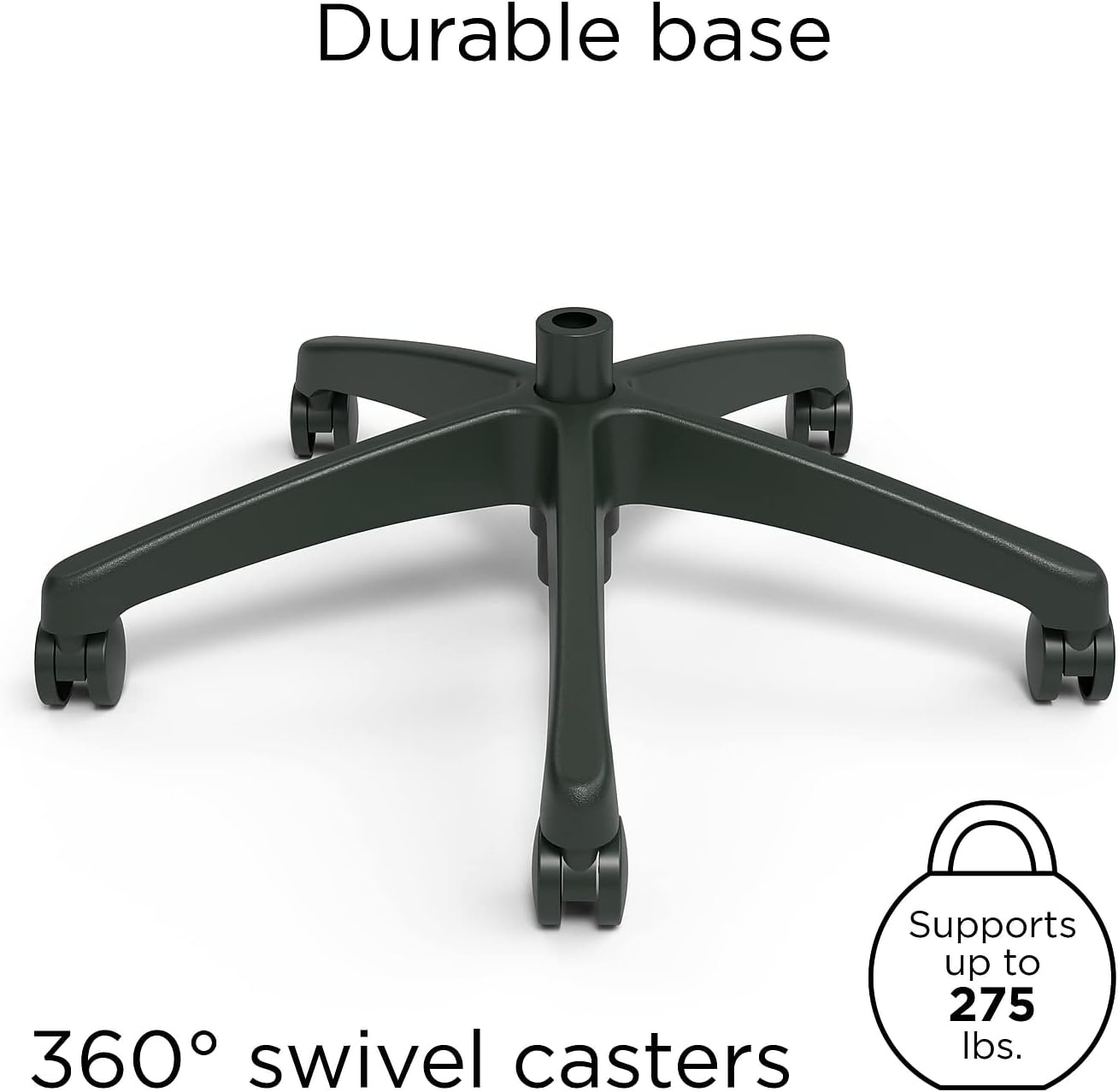 - Black mesh upholstery allows air to circulate.