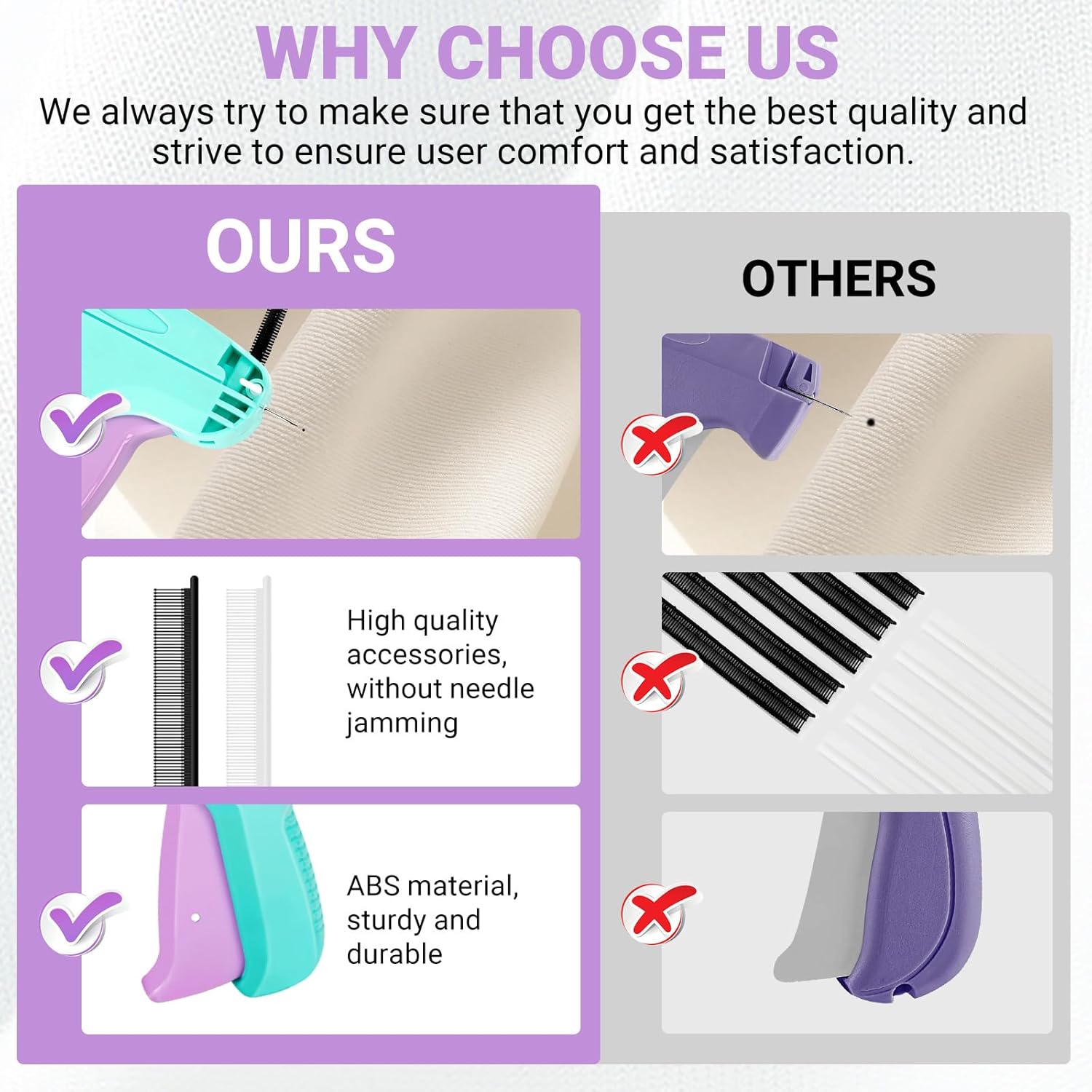 Stitch Gun for Clothes - Handheld Quick Clothing Fixer - Tagging Gun for Clothing, Sewing Kit - Includes 6 Fine Needles, 1000 Black & 1000 White Fasteners (Purple Green)