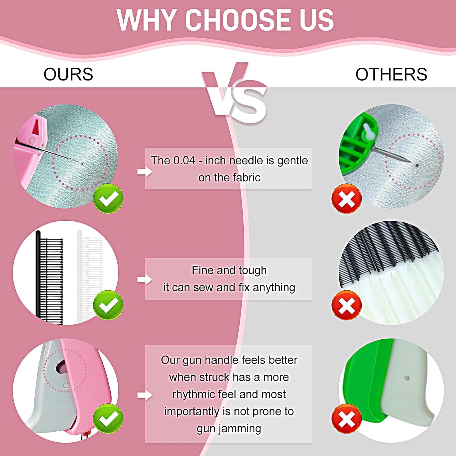 Stitch Gun for Clothes, Handheld Stitch Gun Quick Clothing Fixer,Sewing Kit Includes 1,000 Black Fasteners & 1,000 White Fasteners & 6 Needles,Tagging Gun(Pink)