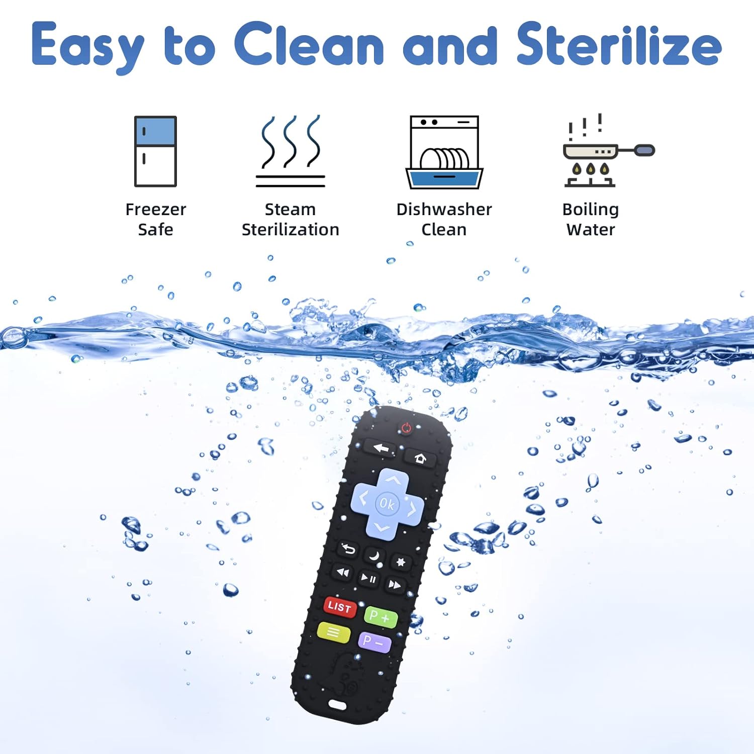 Teething Relief Teethers Toys for Babies 3-6-12 Months Gifts, Food Grade Silicone Sensory Baby Remote Control Teether Bath Toy for Newborn Infant Boy Girl Autism Birthday Gift, Black