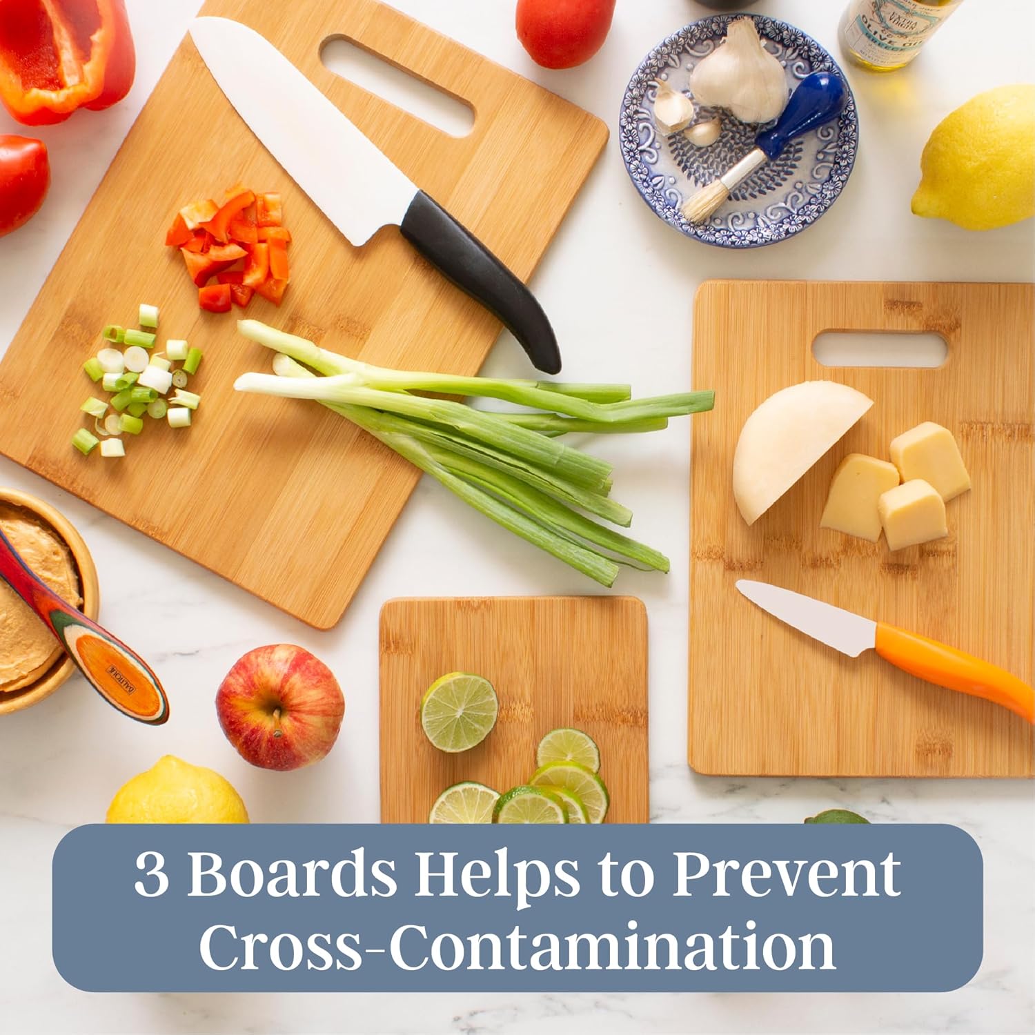 Totally Bamboo 3-Piece Bamboo Cutting Board Set – Wooden Cutting Boards for Kitchen – Great for Chopping and Serving – Large, Medium & Small Sizes for Food Prep