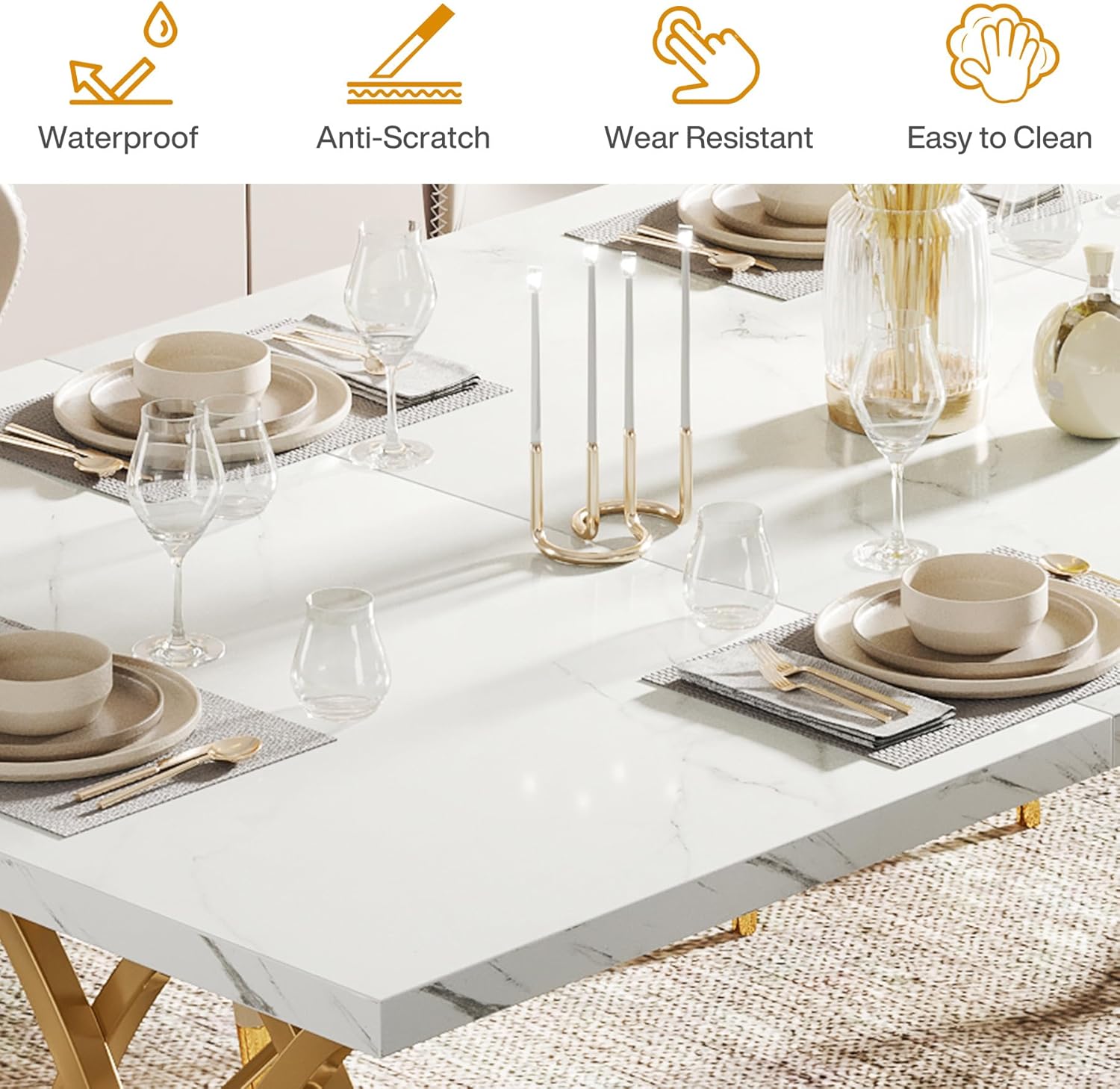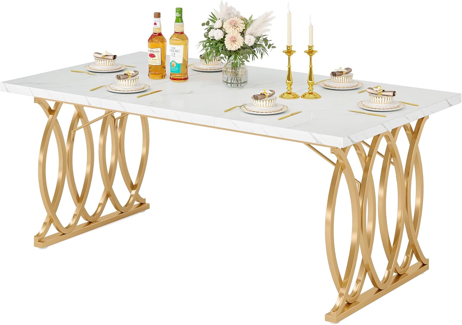 Tribesigns Modern Dining Table, 63" Large Kitchen Table for 4-6 People, Unique Rectangular Dinner Table Kitchen & Dining Room Furniture with Faux Marble Tabletop and Geometric Legs