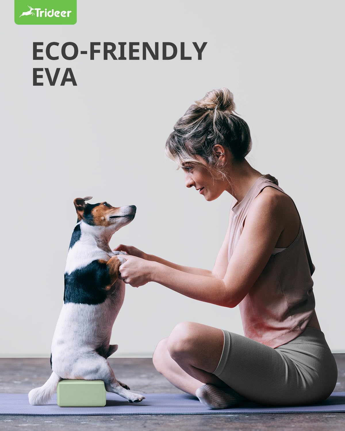 Trideer Yoga Blocks 2 Pack, Soft Non-Slip Foam Blocks with Beveled Edges for Alignment and Stretching in Yoga, Pilates, and Dance - Supportive, Lightweight, Odor Resistant, Latex-Free