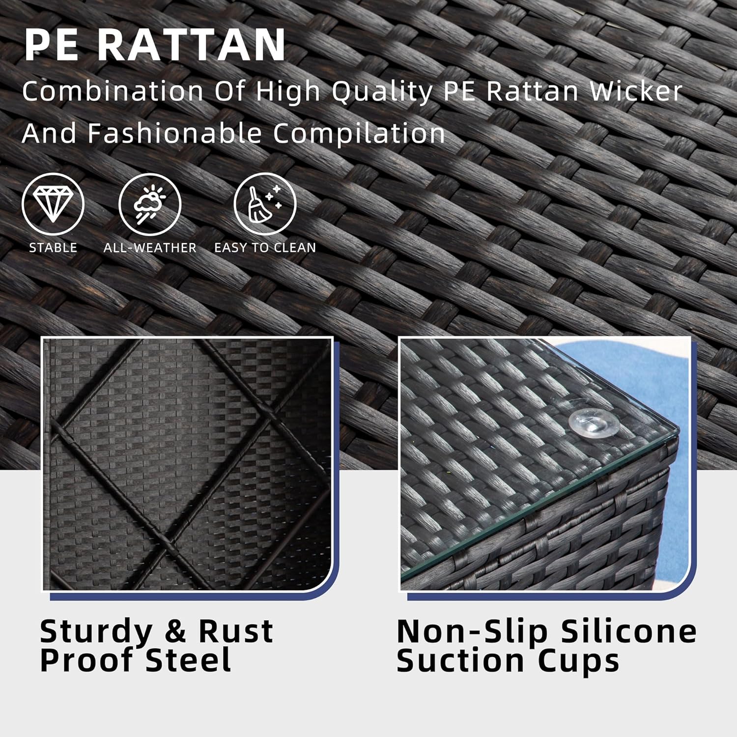 Vongrasig 5 Piece Patio Furniture Sets, Outdoor Patio Set Sectional Sofa, All-Weather PE Rattan Outdoor Couch with Ottoman, Glass Table for Garden, Backyard, Porch, Beige