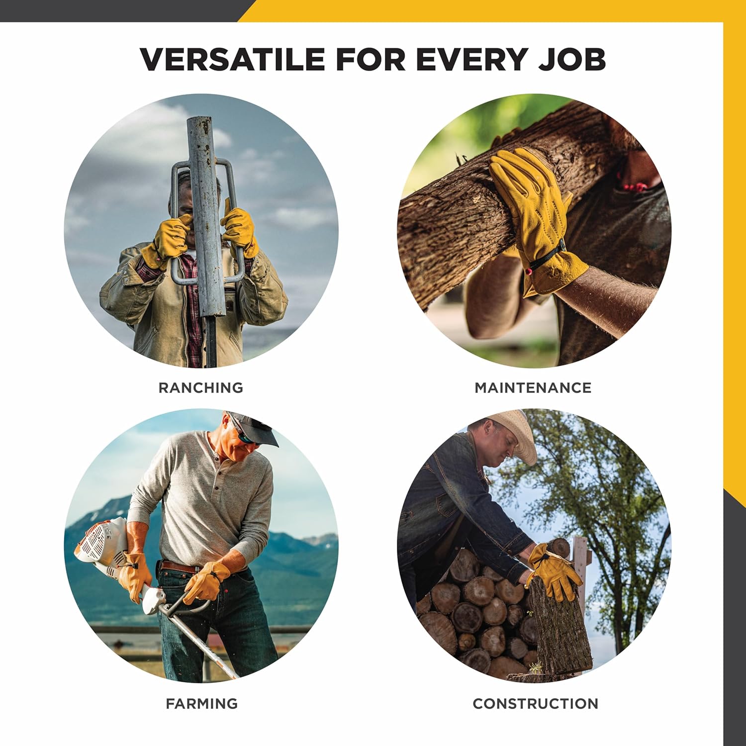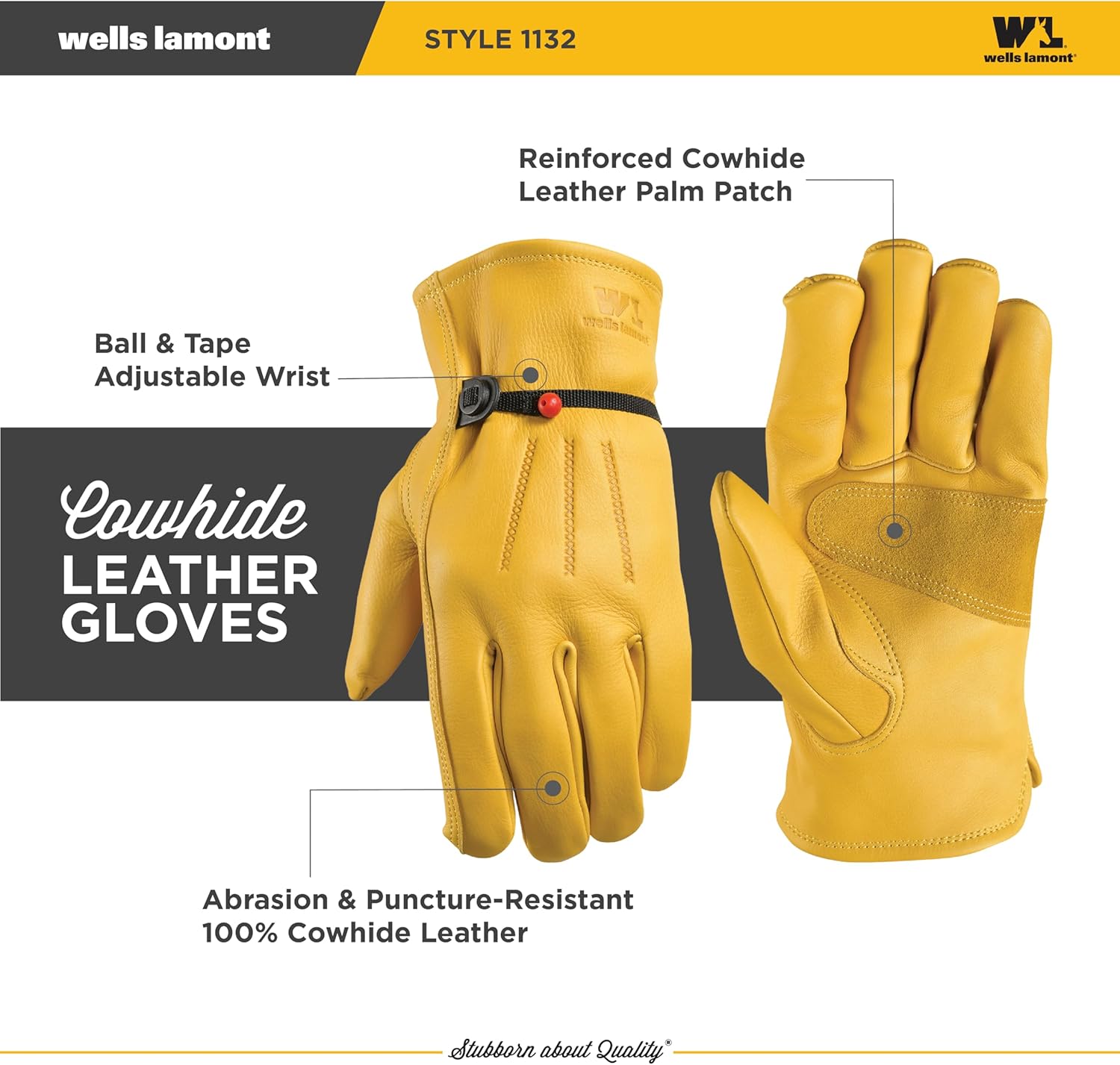 Wells Lamont Leather Work Gloves for Men – Heavy Duty, Cowhide, Abrasion & Puncture Resistant – Adjustable Wrist, Gunn Cut Design, Ideal for