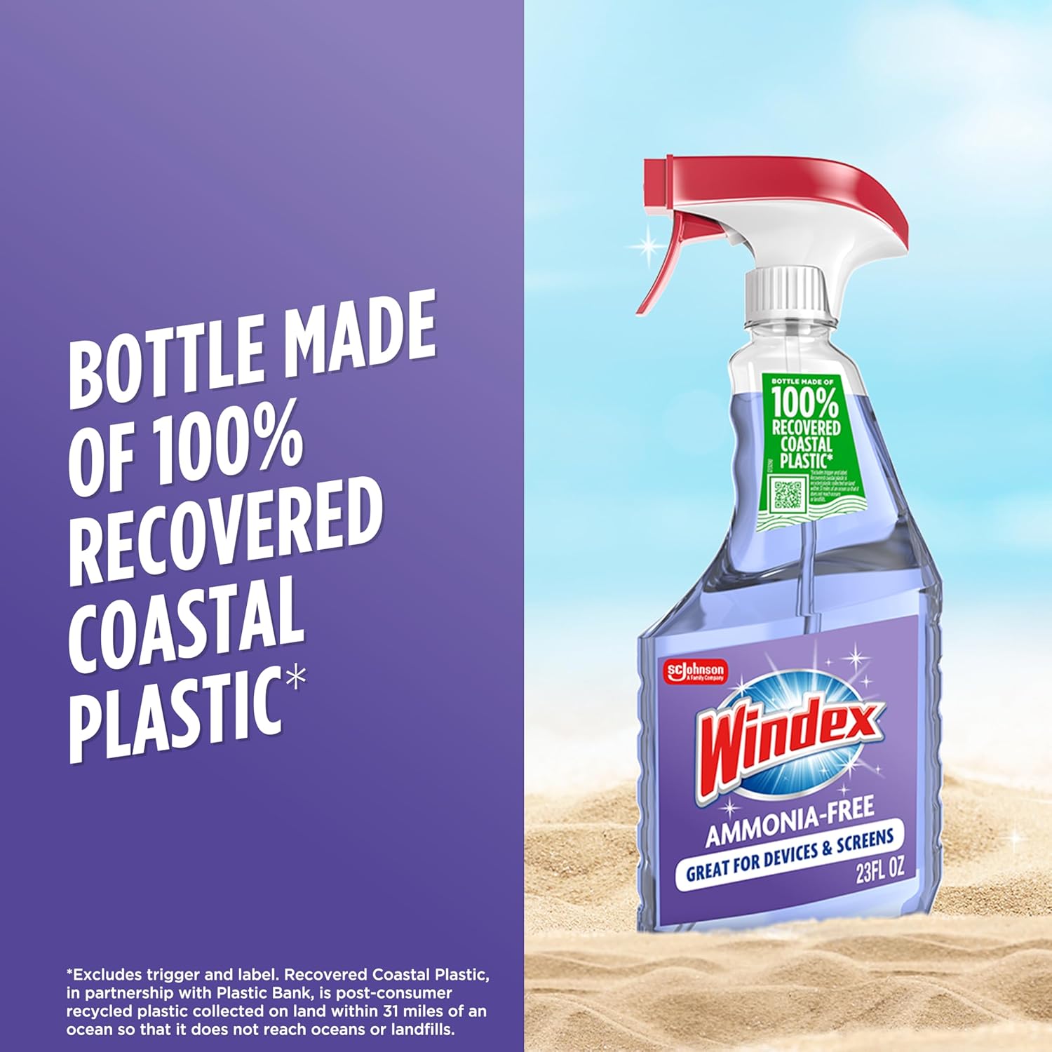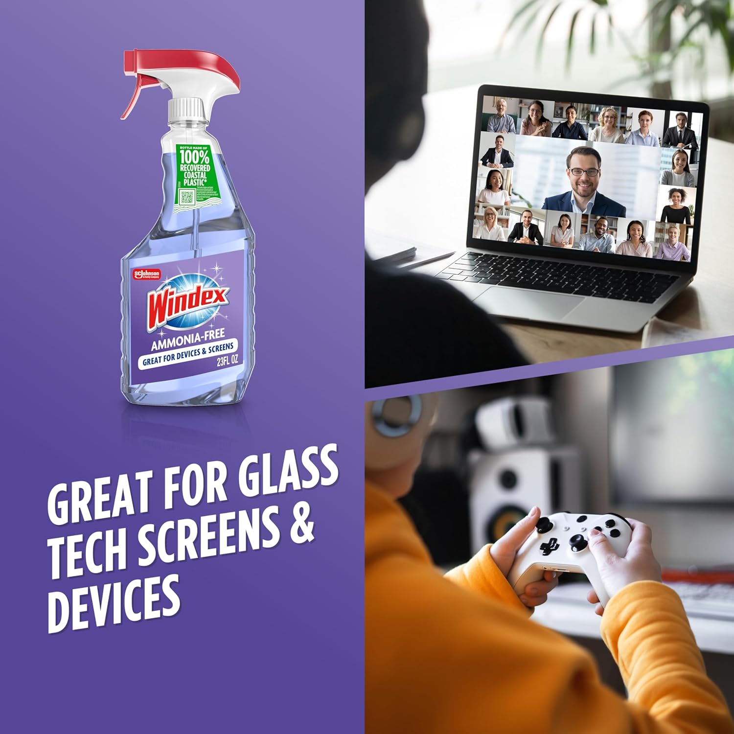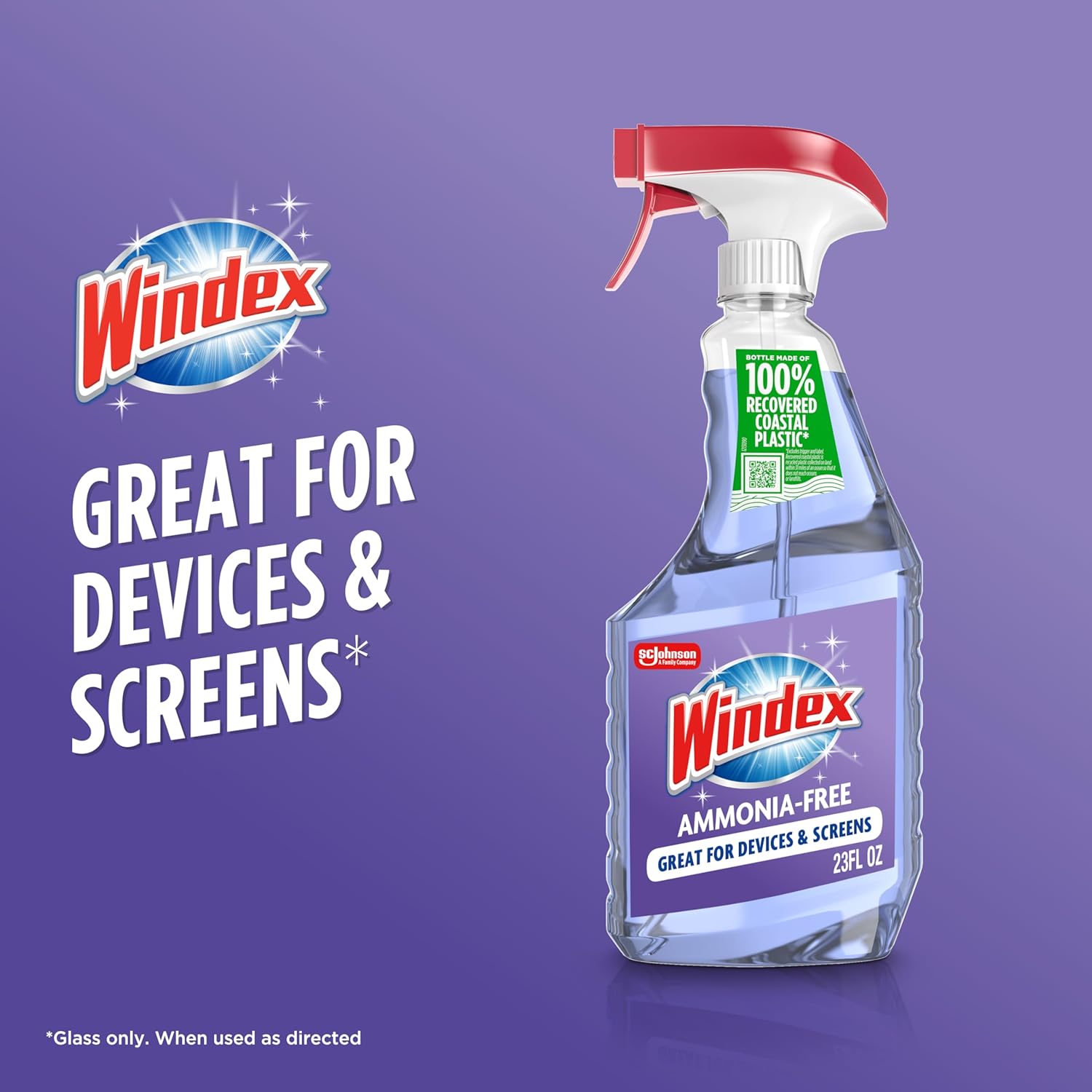 Windex Glass and Window Cleaner Spray Bottle, Ammonia Free, Packaging Designed to Prevent Leakage and Breaking, Surface Cleaning Spray, Crystal Rain Scent, 23 Fl Oz