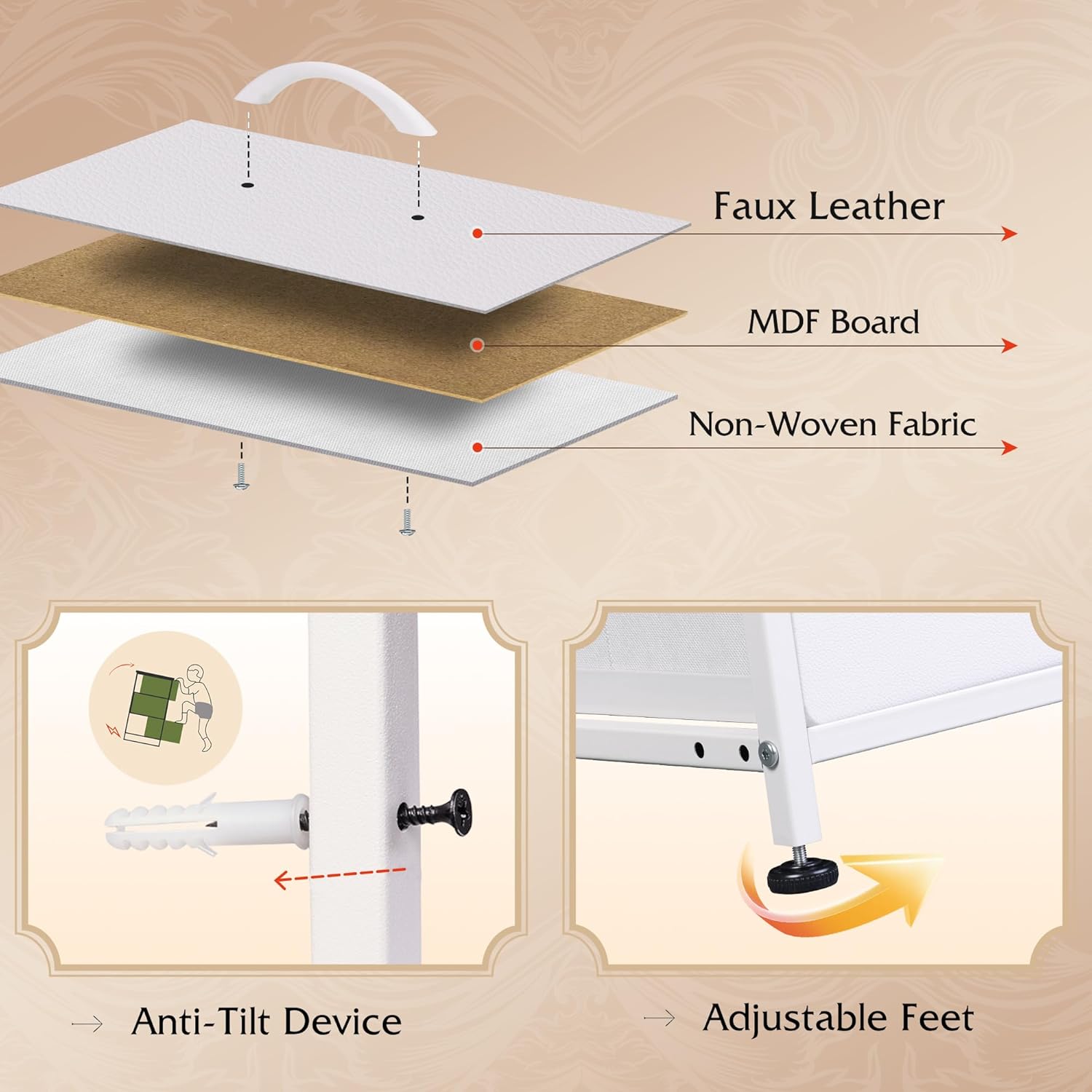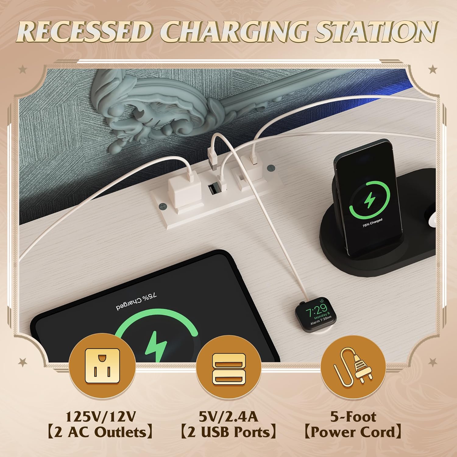 WLIVE White TV Stand for 45, 50, 55 inch TV, Entertainment Center with LED Lights & Charging Station, TV Media Console Table with 8 Fabric Drawers and Open Shelves for Living Room, Hallway, Wood Top