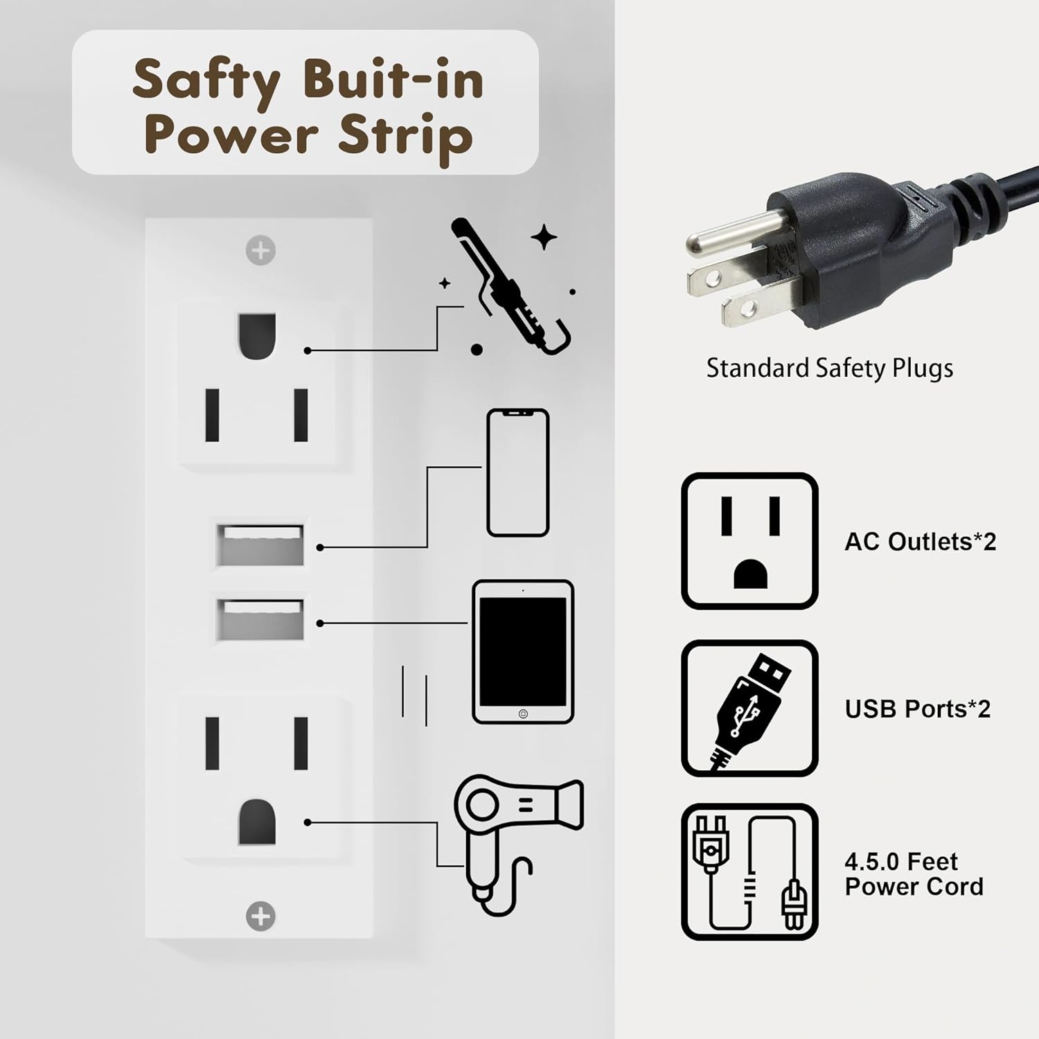 - Power Outlet: The vanity bench is equipped with two sockets and two USB ports. It provides great convenience for charging your phone or other electronic device.